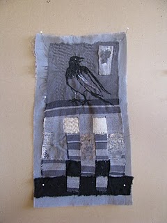 aah raven medicine!beautiful work grace! well im for sure not an embroiderer either, no where close, but i do love this and the space between stitches. seems to give your magic friend a bit of texture and character. but ravens are shapeshifters, so who knows which shape it will appear next.and that little patch of fabric top right… with the worn hole, another portal in your work? is it just me or a reoccurring theme? love it either way. i think i had mentioned this before, on your post with piece with the blue center and pen doodling… how i love portals, and doors… symbols i am researching and feeling out.hope your weekend was fabulous.xox