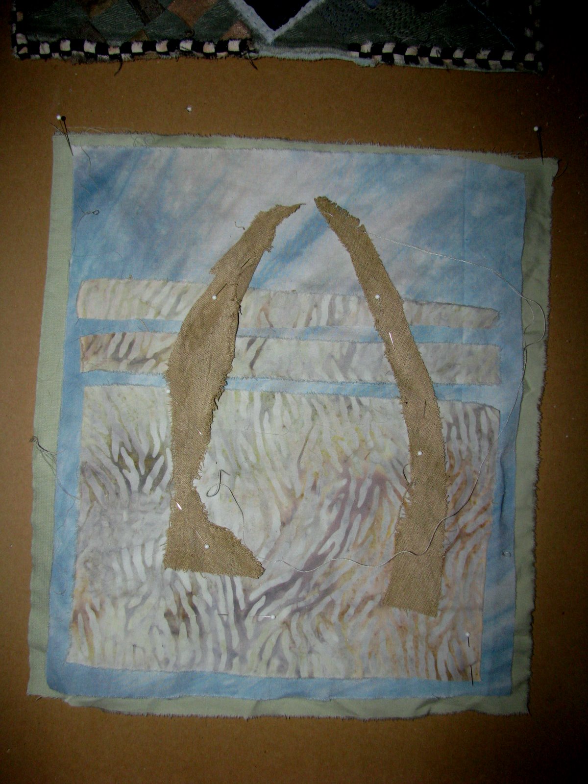 on this funny cloth and think of the two vague things that jude said; about edges touching and letting the piece free of being