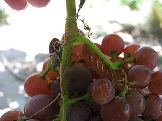 here is a cousin who cheerily ate the leaves ONLY on the grapes, and