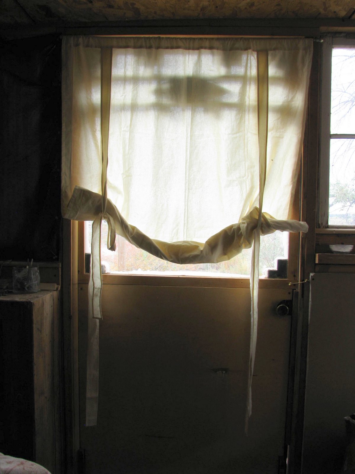 a roman blind usually has rings that the cord is threaded through and then it pulls itself up in soft pleats. this looks like a version of that and you can pleat it or just let it bunch.